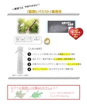 注意:食べ物ではありません。腐食の可能性のある金属などには使用しないでください。また、衣類に使用する際は目立たない場所で確認してください。直射日光を避けて保管してください。すべての菌・臭いの効果を保障するものではありません。