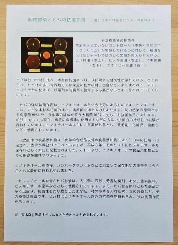 これは、能登ヒバ、植物が発散している成分「フィトンチッド」によるものです。